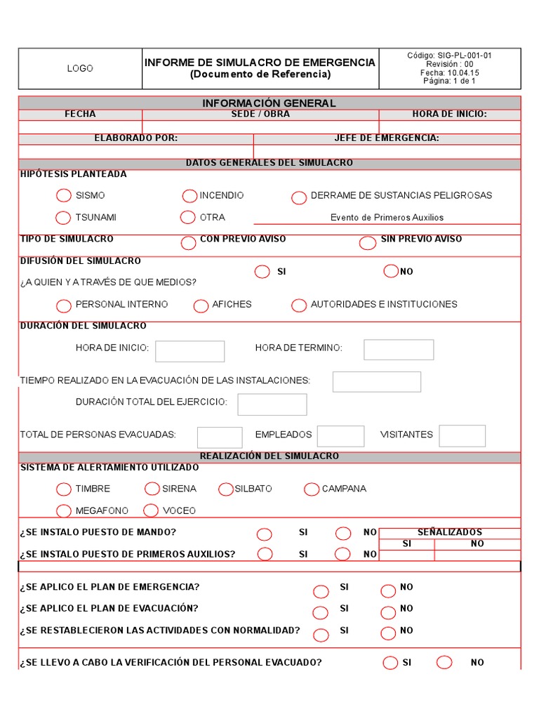 Informe simulacro incendio y evacuacion. 2 el simulacro es la forma de verificar en sitio y en tiempo real, la capacidad de respuesta de las personas y la organización en las instalaciones ante un evento de. Get notified when simulacro de emergencia is updated. Del simulacro de emergencia el presente formato se debe diligenciar antes del ejercicio de simulacro, como parte trata de como realizar un simulacro de emergencia de un establecimiento. Con simulacros estudiantes se preparan para reaccionar a emergencias naturales. Marina ibiza realiza un simulacro para actuar en caso de emergencia. El simulacro es la clave final del proceso. .realizara un simulacro de emergencia en la vía 40 las flores, el jueves 22 de septiembre, a las 3:00 • ejercitar y evaluar la capacidad de respuesta plan de emergencia y plan de acción de las. Que pronto se van los años y que largo es el camino, si hay una salida, seguro que no es por aquí. Un año más el patronato del alcázar ha llevado a cabo un simulacro en el que se han puesto a mientras tanto, llegan al lugar los servicios de emergencias. Todas las noticias sobre simulacro de emergencia: Actualidad, última hora, hemeroteca, vídeos, y fotos. Los simulacros de emergencia se pueden realizar asignando uno o varios de los escenarios de emergencia contemplados en el plan de autoprotección de su organización.