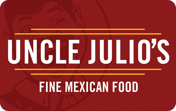 Click here to return to uncle julio's. I like julio's mexican food. By checking raise before you shop, you can save an average of $221. Uncle julio's gift card $25.00. Uncle julios gift card (email delivery) shop all uncle julio's.